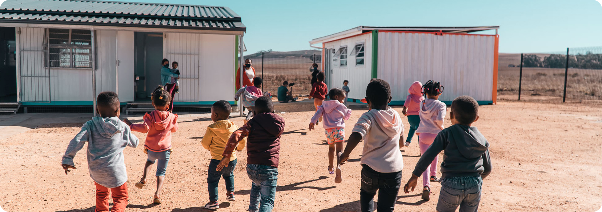 Veel voorscholen in achtergestelde gemeenschappen hebben geen aparte ruimtes voor kinderen van verschillende leeftijdscategorieën. Vaak levert Breadline Africa een complete oplossing, zoals twee gekoppelde klaslokalen, een keuken en een toiletunit, plus een kantoor en een ziekenboeg.