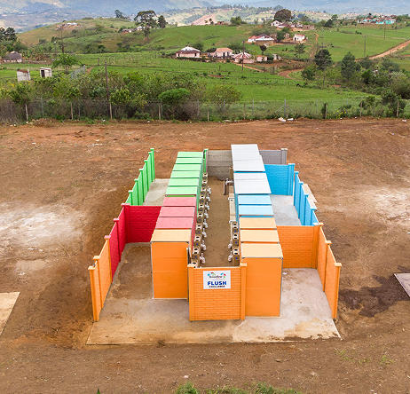 Op locaties met beperkte watertoevoer plaatst Breadline Africa waterloze wc’s die ontlasting veilig composteren en urine afvoeren via een infiltratiesysteem.